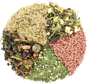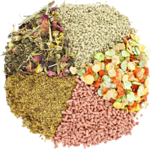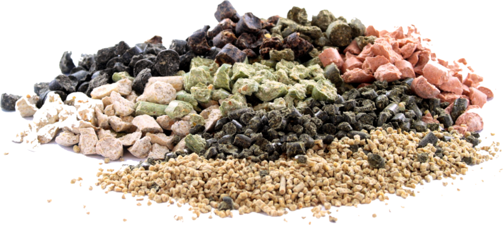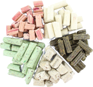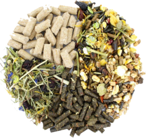 Development, production and/or packaging of feeds and snacks for horses, camels, rodents and other herbivores